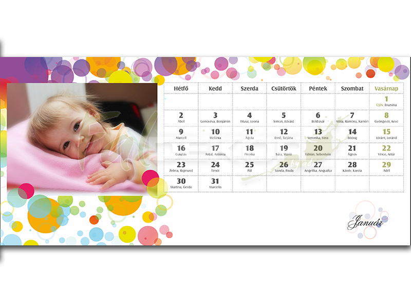 Színes, gömbös asztali naptár