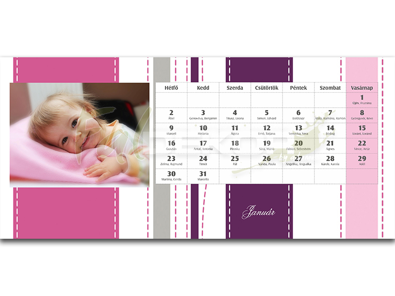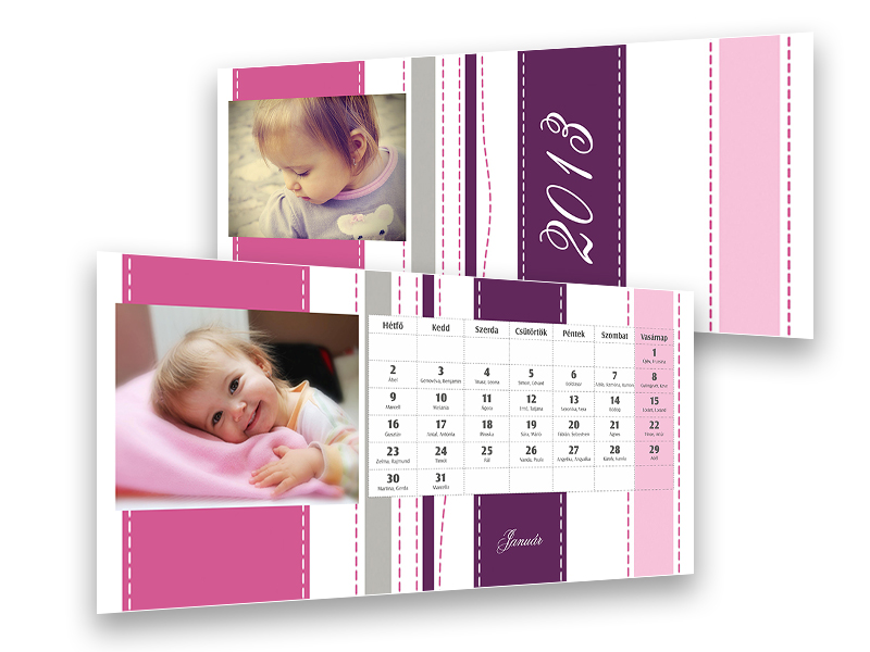 Rózsaszín-lila csíkos asztali naptár