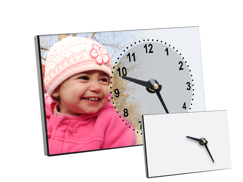 14x20 cm-es, fényes, gyönyörűen nyomható 2 cm vastag óra. Falra akasztható vagy asztalra is állítható kitámasztóval. Álló- és fekvő formában is használható.